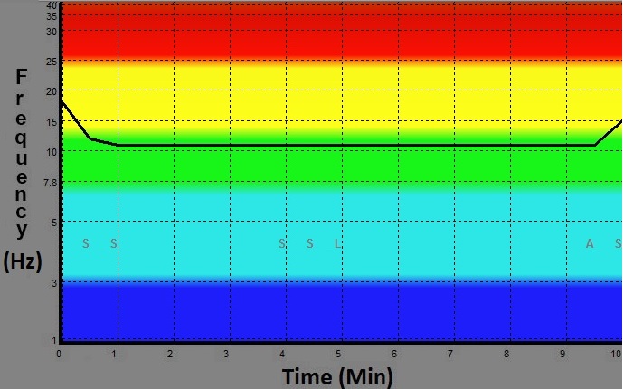 This program targets the center of the Alpha range. This frequency has been found to be the strongest alpha frequency offering the easiest access to the alpha state. This program is a good choice for beginners.