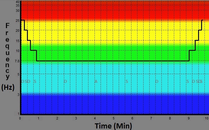 This program targets the Schumann Resonance. Winfried Otto Schumann calculated this frequency in 1952 to be the Natural resonance between the surface of the Earth and the conductive ionosphere which surrounds the planet. This frequency is reported to lower blood pressure and improve other health factors as well.
