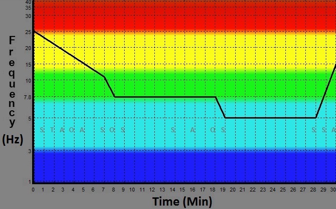This program targets two brain states, alpha and theta. This program is designed to help relax after a high stress incident. The program starts by using the Schumann Resonance and then moves to the theta range.
